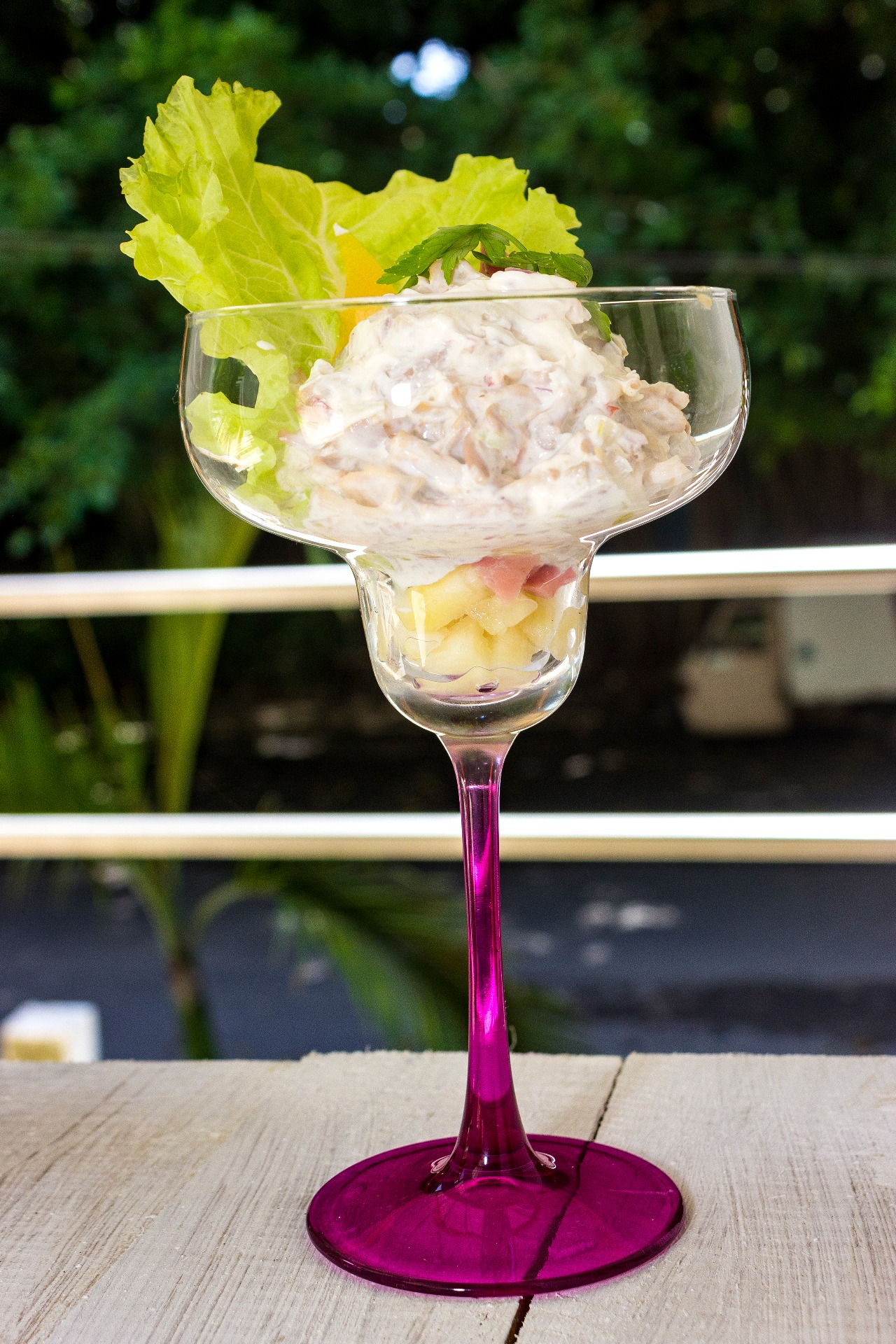 Langosta ripeada con vegetales y salsa especial en base mayonesa