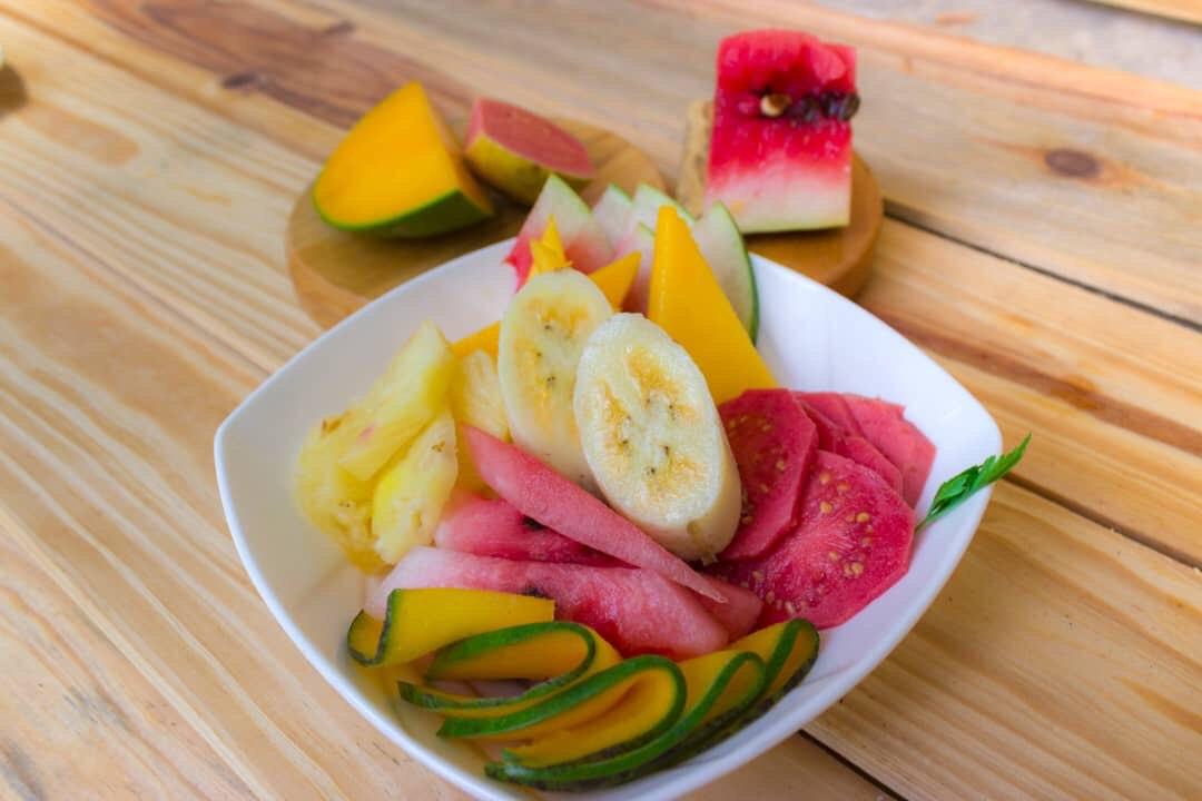 Frutas de temporada (mango, guayaba, plátano, piña, melón)