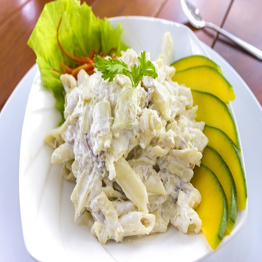Pollo con pasta y salsa especial de la casa en base mayonesa